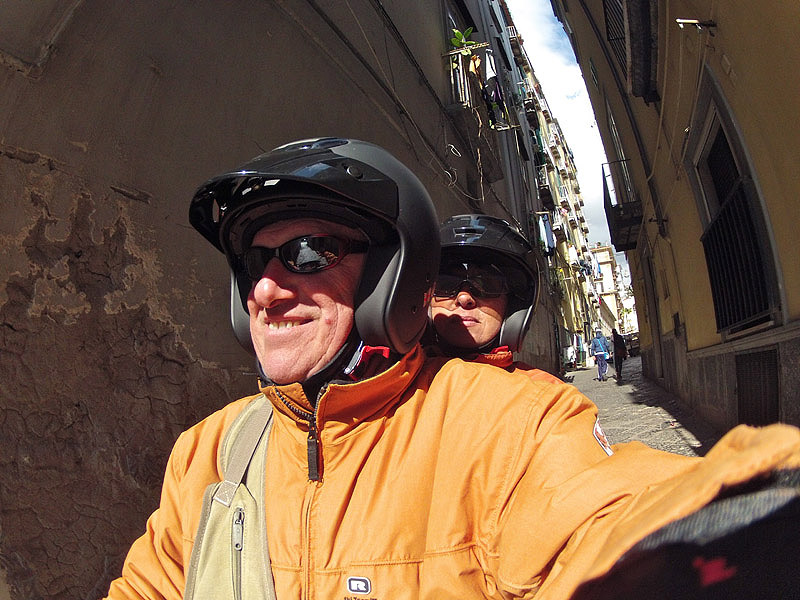 Es sind nicht immer die Sehenswürdigkeiten, die eine Stadt sehenswert machen. Uns hat die Rundfahrt durch Napoli Spass gemacht. Allerdings nur mit dem Roller, mit dem Wohnmobil durch Neapel zu kurven würde ich keinem empfehlen. Die pulsierende Millionenmetropole am Golf von Neapel besichtigt man am besten mit dem Bus und zu Fuß oder mit einem Zweirad. Mit dem Fahrrad, Motorrad oder Roller bekommt man auch einen Parkplatz, was für einen Pkw schon sehr mühevoll ist und für ein Wohnmobil absolut aussichtslos.